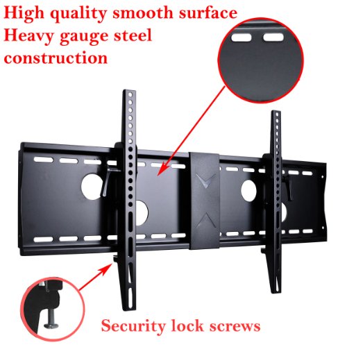 The VideoSecu TV Mount is compatible with LED, LCD, and Plasma TVs and other flat panel display between 37 and 70 inches weigh less than 165lbs. Supports all VESA mounting standards 700x400, 684x300, 600x400, 600x300, 600x200, 500x300, 400x400, 400x300, 400x200, 300x300, 300x200, 200x200, 200x100 mm. Over 12 lbs solid heavy-gauge steel construction offers a smooth surface, high-tech look while providing strength and durability. Viewing angle can be adjusted by tilt 0-15 degree forward. TV is positioned just 2.2" profile from the wall for a clean, low-profile appearance. Lift and lock safety system secure the display in position as needed. How to ensure the mount compliance with your selected display? First, the weight of your display should be less than 165lbs. Second, mounting holes distance on the rear of TV must be less than 28" (700mm) horizontally and 16" (400mm) vertically. Last, the mount plate width is 32". Your TV should be at least 37". Otherwise, you will see the bracket. Note: VideoSecu brand mount, please report to Amazon.com if you receive a mount without VideoSecu logo.